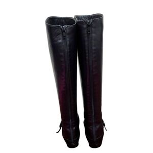 MANOLO BLAHNIK Size EU 36/US 6 Black Leather Low-Heeled Tall Back- Zip Boots Italy