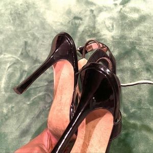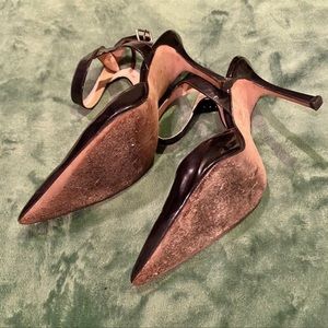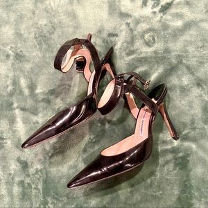 Manolo Blahnik Black patent leather strappy mule high heel stiletto