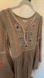 Beautiful dress featuring colorful embroidery and bell sleeves. Romantic and so special. Little gold button in the front slip in style. Hits at knee lined and 💯 cotton flirty design. Size 42 which is medium large