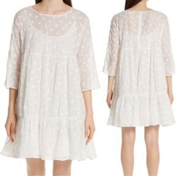 MANSUR GAVRIEL Floral Embroidered Linen Blend Dress In White Size 38