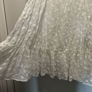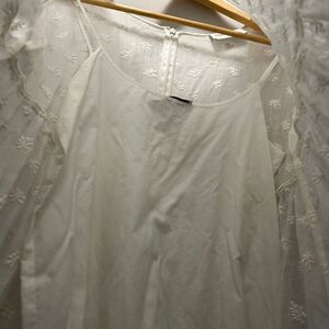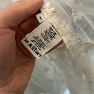 Elegant white top with intricate embroidery by Mansur Gavriel. Perfect for versatile styling with a removable cami liner underneath; perfect for summer!