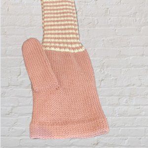 MANTARAY -- Mitten/Gloves, Pink & White Stripe Elbow Length "Hoodie" Gloves, NWT