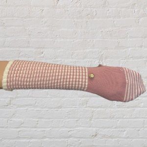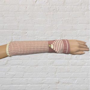 These new-with-tags playful and feminine elbow-length gloves are designed to add a touch of uniqueness to your winter wardrobe. These gloves feature a delightful pink and white striped pattern that exudes a youthful and fun vibe. With the option to wear them fingerless and with the hood buttoned to your wrist, or covered up with the adorable little pink and white hood, these gloves provide versatility to suit your style and comfort preferences. The button detail on the hoodie ensures security for the hood when not in use. Embrace your playful side with these unique and delightful gloves!