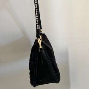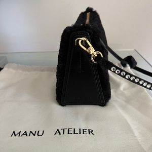 Brand New with Tags MANU ATELIER "Mini Prism" Shoulder Bag. Gorgeous!!! It retails for $435.00 PRODUCT DETAILS: Color Black Details • Fabric: Faux fur • Optional handle with crystal embellishments • Gold-tone hardware • Structured base • Leather trim • Zip closure • Faux suede lining • Weight: 11oz / 0.31kg • Imported, Turkey Height: 5in / 13cm Length: 8.75in / 22cm Depth: 3.25in / 8cm Handle drop: 10.75in / 27cm