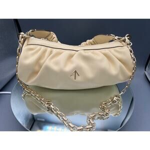 MANU ATELIER Cylinder Ruched Shoulder Bag in Vanilla calf skin leather