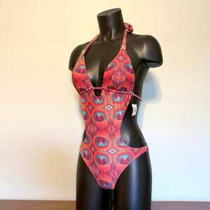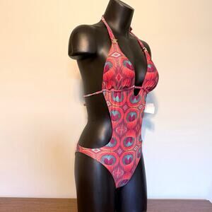 MAR by VIX Swimsuit Size Small One Piece Halter Cutout Peacock NWOT