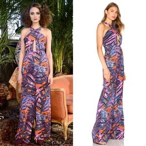 MARA HOFFMAN 70s Dark Tropical Print Sleeveless Cross Front Wide Leg Jumpsuit 0