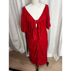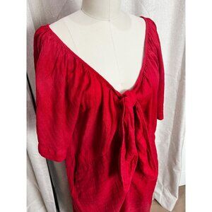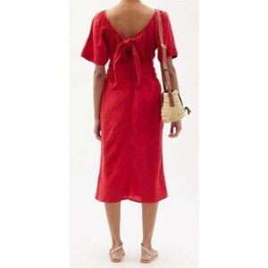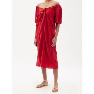 MARA HOFFMAN Aliz Reversible Gathered Linen-Blend Midi Dress Sz L NWT