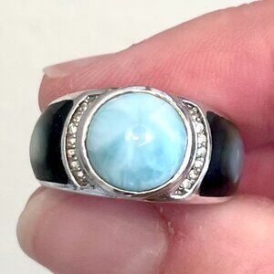 STERLING SILVER MARAHLAGO LARIMAR AND MOTHER OF PEARL RING, SIZE 7
