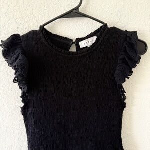 MARBLE Black Ruched Maxi Dress with Flutter Sleeves
