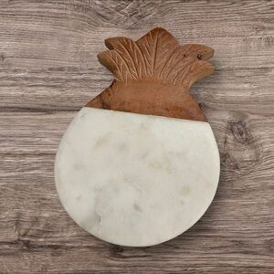 White Marble pineapple with acacia wood.