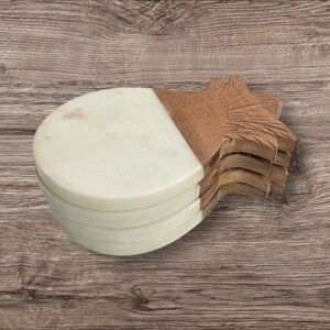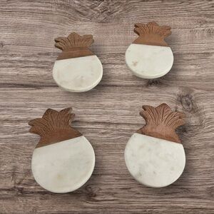 MARBLE PINEAPPLE COASTER SET OF 4, Marble and acacia wood made in India.
