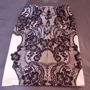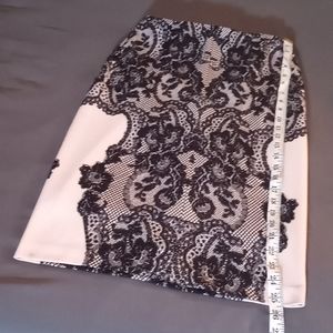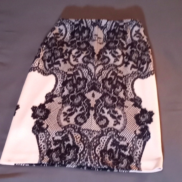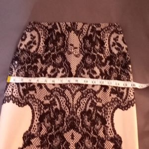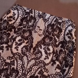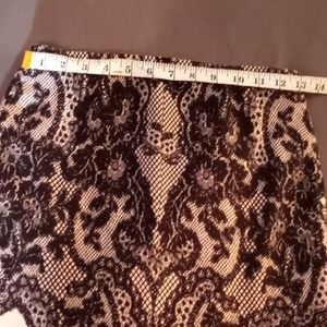 Super cute and classy a line skirt. Peach and black color Very cool lace design is not a piece of lace but a drawing of lace.