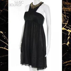 MARC BOUWER GLAMIT Blk/Gold Bead Sheer Panel Dress