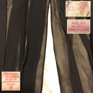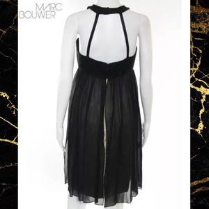 SIZE 4. 37” Length. 26”-28” Waist. 32” Bust. Black & Cream Colors. Black & Gold Beaded Detail On Front & Neckline. Empire Waist. Sheer Panels. Open Back. Zipper & Hook & Eye Closure. 100% Silk. Dry Clean. Perfect Condition. WORN ONCE