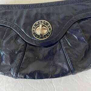 MARC BY MARC JACOBS GLOSSY PATENT LEATHER WRISTLET CLUTCH NAVY