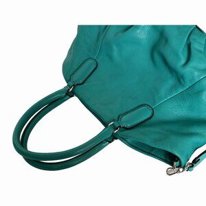 This Marc Jacobs Hobo/ Shoulder bag is wonderfully Slouchy! Thick, Supple Aqua Blue (Teal ) Cow Leather and featuring rolled top handles,