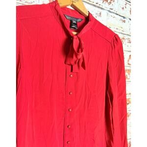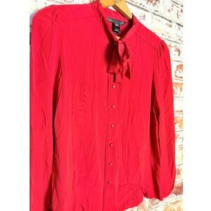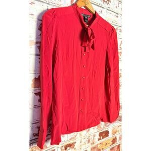 MARC BY MARC JACOBS 'Michaela' Matador Red Pure Silk Neck Tie Button Down Blouse