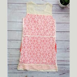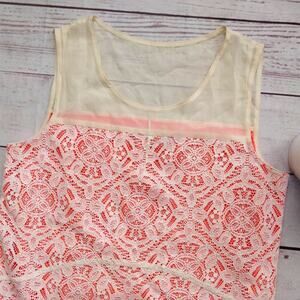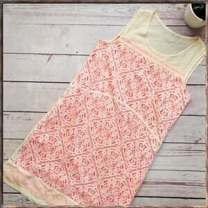 This is a stunning Marc by Marc Jacobs "Muriel" dress in size S. In excellent condition. This was a sample (as written on the lining - see fourth picture), and I'm not sure if the dress was ever mass-produced in this color. Orange with white lace overlay, sheer silk upper part. Pockets.