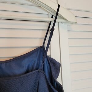 Ruffle neckline, Ruffle pockets, Textured silk, Self-tie waist belt, Adjustable straps, Built-in Bra