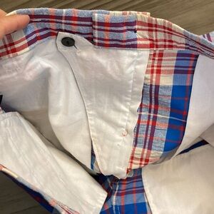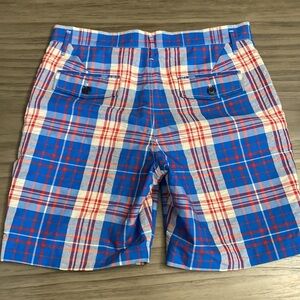 Maybe worn and washed once size 32 Marc by Marc Jacobs plaid shorts. Measurements: waist 17”, rise 11” & inseam 8”