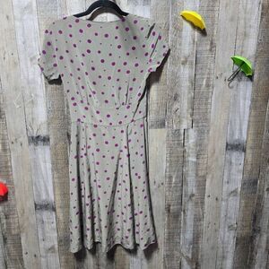Details: Short sleeve, lightweight, zip side closure, v neck with buttons, midi