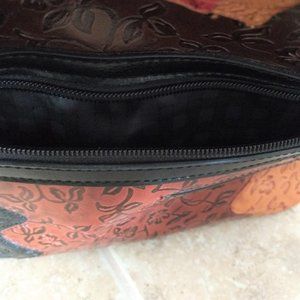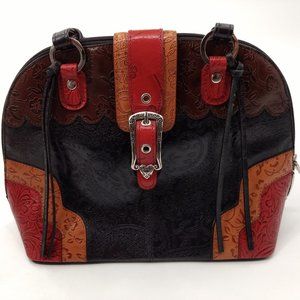 Pre-owned MARC CHANTAL MC Shoulder Bag Embossed Leather Multicolor Double Strap Tassel. Zip top with front flap snap and sliver tone buckle. Zip and open pockets on the inside. Back zip pocket with small slit pocket. Double strap with design and silver tone loops. Tassel accent. Fabric lining with logo. Beautiful detail and design. This is a pre-owned bag not new. Normal wear with use. In great pre-owned condition. Please take a look at all pictures and measurements in pictures. Non smoking home.
