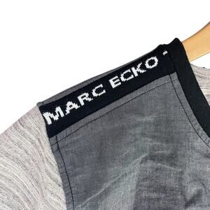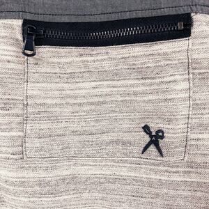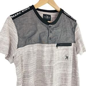 MARC ECKO Cut & Sew Short-Sleeve Henley Zipper Pocket Shirt Gray Cream Black L