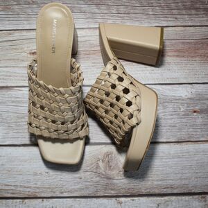 MARC FISCHER Women' s Gervasi Faux Leather Square Toe Platform Sandals Size 10M