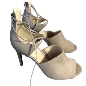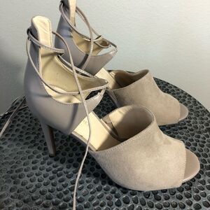 {MARC FISHER} - BEIGE SUEDE LACE UP HEELS=S4