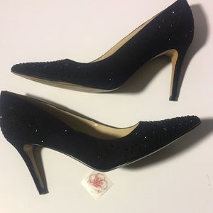 The go-to special occasion shoe! 3.5” heel. Black suede upper. EUC. Size 9.5