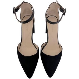 Dress to impress with the Marc Fisher dress pump. This pump features a high block heel, fashionable adjustable ankle strap and a modern pointy toe. Pair these with a dress for a flirty put together outfit. This shoe is the perfect wardrobe staple!