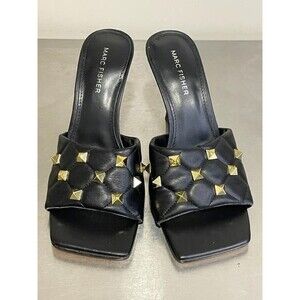 MARC FISHER Black Gold Rockstud Quilted Dacorin Slides Sandals Women's Sz 8
