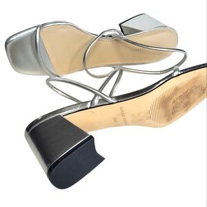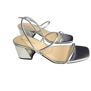 MARC FISHER Block Heel Sandal In Silver 8.5