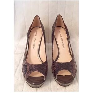 MARC FISHER Brwn Faux Snakeskin Platform Stilettos