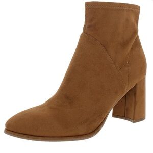 This elegant bootie showcases stretch upper for a comfortable fit along with almond toe and covered block heel for added style.