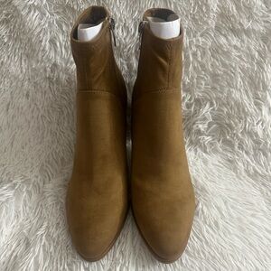 MARC FISHER DYVINE FAUX SUEDE ANKLE BOOTS IN MEDIUM NATURAL FABRIC