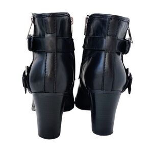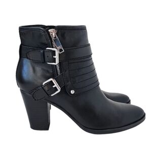 MARC FISHER Engine Black Leather Heeled Buckle Zip Ankle Boots size 9.5