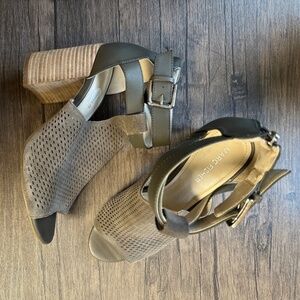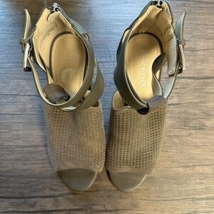 **MARC FISHER* Gray Peep Toe Ankle Strap Block Heels Size 8.5