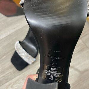 MARC FISHER LTD Angelo Ankle Strap Cocktail Heel Sandals in Black Suede 6.5