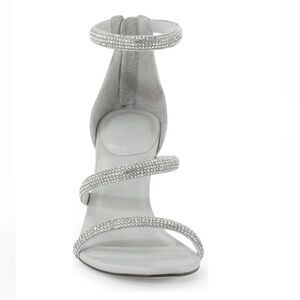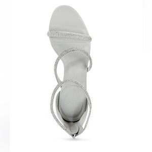 DPARKLING RHINESTONES EMBELLISH A STRAPPY SANDAL THAT WRAPS YOUR FOOT IN GLITZ AND GLAM