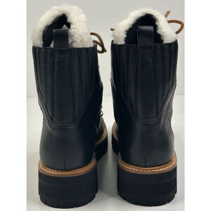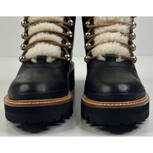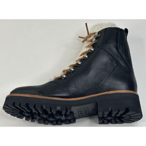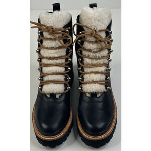 MARC FISHER Lizzie Black Leather Lace Up Ankle Boots Womens 8.5M Sheep Fur New