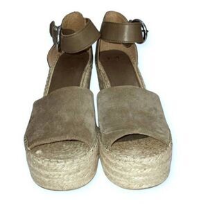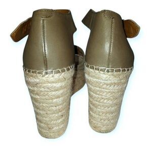 MARC FISHER OLIVE GREEN ESPADRILL WEDGE SANDALS SZ.9.5 EUC. GORGEOUS SHOES IN EXCELLENT USED CONDITION. A LITTLE WORN ON THE INSIDE BUT NOT VISIBLE WHEN WORN.