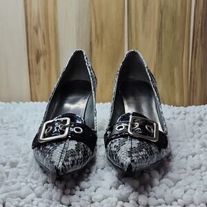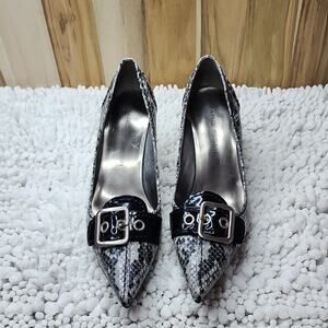 MARC FISHER POINTED TOE BLACK/WHITE SNAKE PRINT WITH BUCKLE WOMAN'S SIZE 8.5 🔥