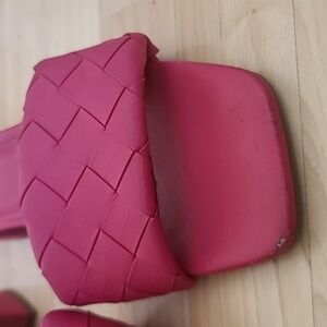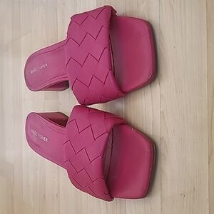 MARC FISHER Pink Casper Weave Square-Toe Slip-On Block-Heel Sandals Size 11