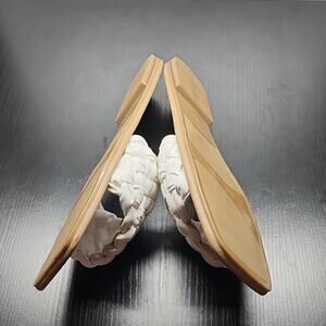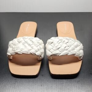 MARC FISHER SQUARE TOE SLIDES CRISS CROSS RIBBON THICK LEATHER BOTTOMS W.SIZE 10