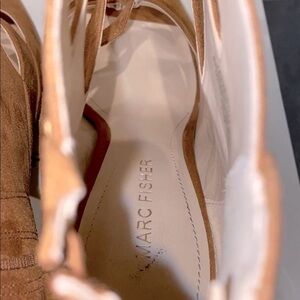 MARC FISHER Suede Caged Chunky Camel Booties