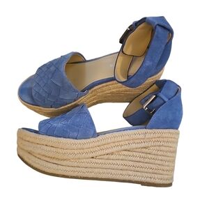 MARC FISHER VARIN BLUE SUEDE PLATFORM ESPADRILLES SIZE 8 SH177