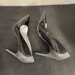 MARC FISHER WOMEN' STILETTO HEELS CLOSED TOE SLIP-ON PUMP SIZE 81/2M COLOR GLOSSY BLACK & GLITTER SILVER Smooth microfiber vamps,romantic po heel height measurements approximately 4".inched stiletto heels make you look glamorous.Microfiber linings and insoles of these pumps shoes women heels provide crisp and comfortable space for your feet.SAFE Rubber soles of these womens pumps comfortably make you stay safe while showing your beauty under all weather Sole material Rubber Outer material Microfiber Closure type Pull-On conditions.VERSATILET hese pointed toe dress pumps shoes can be matched with many styles of outfits,such as business suits,skirts,dresses,jeans,etc.In addition,they are ideal for many occasions,like party,dating,working,etc.,especially wedding. THIS ITEMS IS PRE-OWNED EXCELLENT CONDITION WITH ONLY LIGHT SIGNS OF WEAR IF ANY CHECK THE PICTURES(FYI THE FIRST PICTURES IS JUST A MODEL TO SHOW WHAT THE SHOE LOOK ON CHECK THE PICTURES)