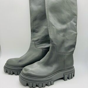 MARC FISHER WOMEN’S BEAUTIFUL TALL GRAY LEATHER PLATFORM MALENA BOOTS SIZE 8.5